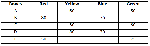 The given table shows the number of non defective balls in four different colors of 5 different boxes. (Some of the data is missing).