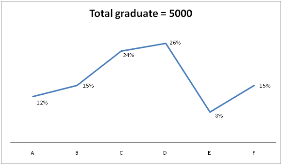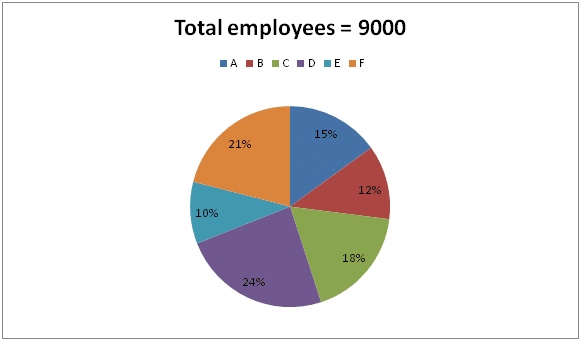 The pie chart shows the total employees working in different departments in a company and the line graph shows the percentage of graduate employees among them.