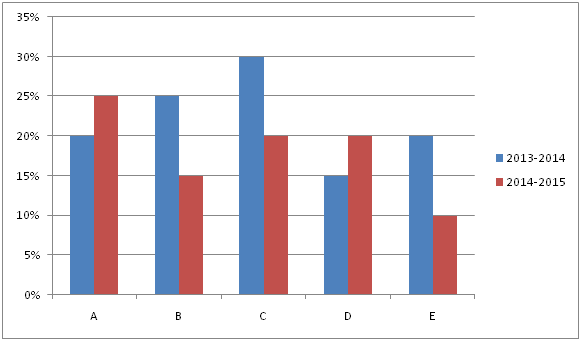 Total number of students from B in 2014 = 125x/100 = 5x/4