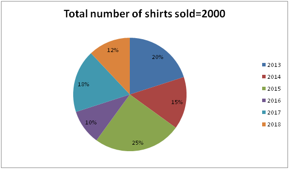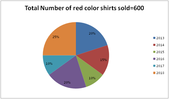 The given pie chart shows the percentage of red color shirt sold in six different years.