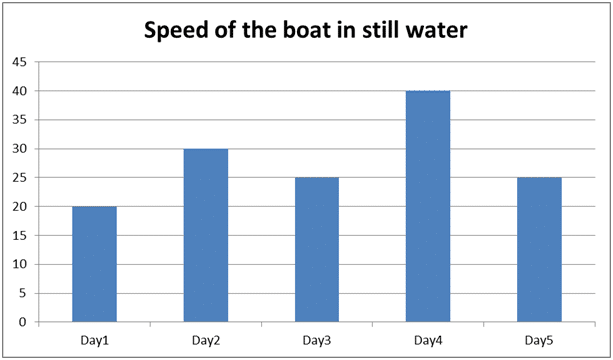 The given bar graph shows the speed of the boat in still water (in kmph) in five different days.