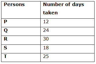 The following table shows the number of days taken by 5 different persons to complete the work.