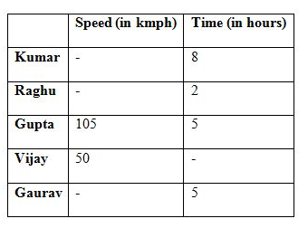 7) Find the time taken by Vijay if it is known that the distance travelled by Kumar is 8/21 of the distance travelled by Gupta?
