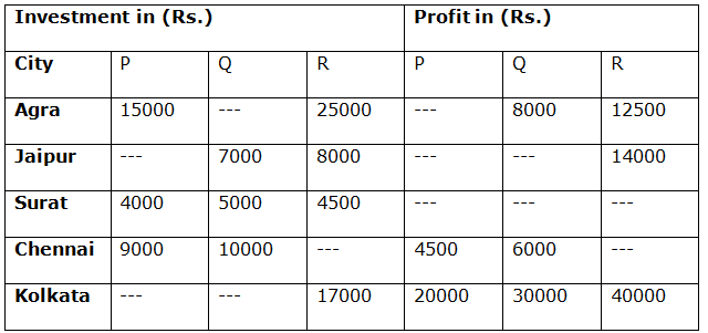 9) If the total profit earned from Jaipur by all of them is Rs. 32375 and each invested for 9 months then find the ratio of investment of P in Jaipur city to the profit of Q from the Agra city?