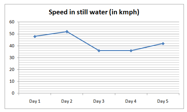 3) The distance travelled by the boat in downstreamon day4 and day 2 is 50 km and 84 km respectively. If the time taken in upstream on day2 and day4 is same as the time taken in downstream on same days, then find the difference between distance travelled by boat in upstream on day2 and day4?