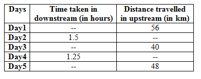 The given table shows the time taken by downstream and the distance travelled in upstream in five different days.