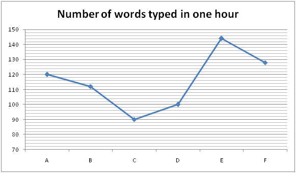 The given line graph shows the number of words typed in the book by six different persons in one hour.