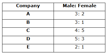 4) The ratio of the number of IT to HR employees from B is 7: 5 and the ratio of the number of male IT to HR employees from B is 3: 1. What is the ratio of the number of female employees from IT to HR from B?