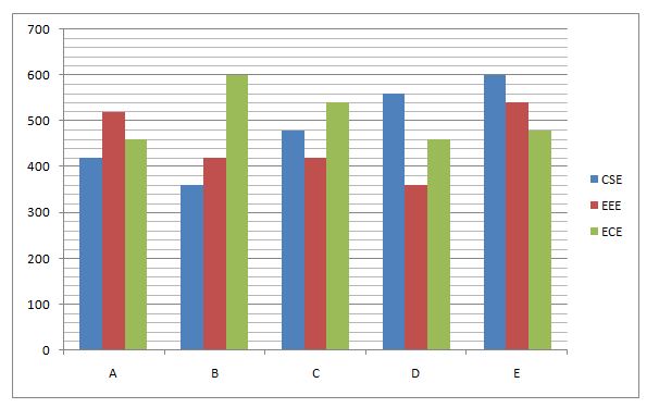 7) What is the difference between the number of students from A, B and D together in EEE departments and the number of students from B, C and E in ECE departments together?