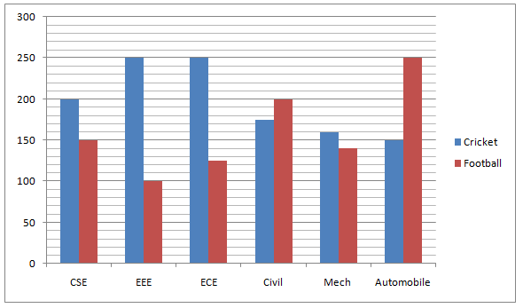 The given bar graph shows the number of boys who like two different games in six different departments from SRM College.