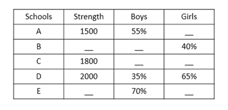 The following table represents the strength of five different schools and the percentage of boys and girls in those schools.