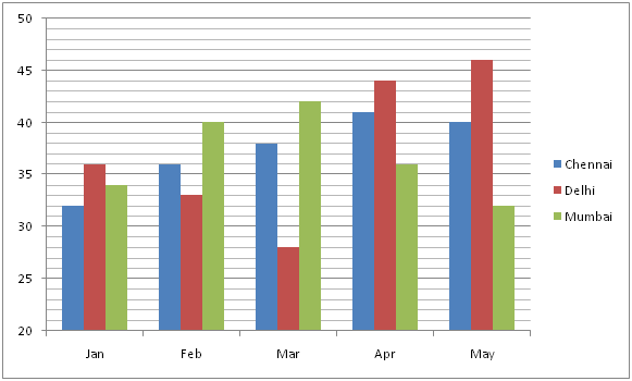 The following bar graph shows the average temperature (In 0C) in 3 different cities in 5 different months.