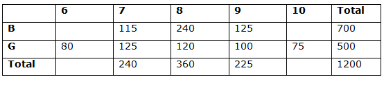 7) If the total no. of students in class 6 is 200, the no. of boys from 6, 7, 8 together form what % of total no. of boys?
