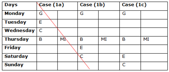 E had match on immediately before C. G had a match on one of the days before E but not immediate before. Since Case (1a) is not possible.