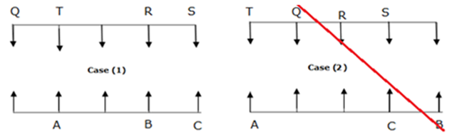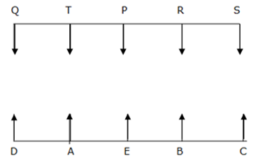 Ten people A, B, C, D, E, P, Q, R, S and T are sitting in two rows. Five people in each row facing each other. A, B, C, D and E are facing north. P, Q, R, S and T are facing south but not necessarily in the same order.