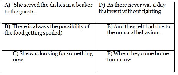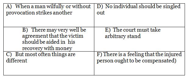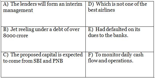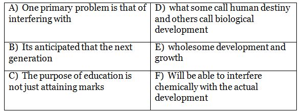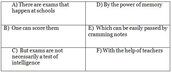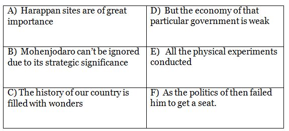 Direction (1-10): In the following questions two columns are given containing three sentences/phrases each. In first column, sentences/phrases are A, B and C and in the second column the sentences/phrases are D, E and F) A sentence/phrase from the first column may or may not connect with another sentence/phrase from the second column to make a grammatically and contextually correct sentence) Each question has five options, four of which display the sequence(s) in which the sentences/phrases can be joined to form a grammatically and contextually correct sentence) If none of the options given forms a correct sentence after combination, mark (e), i.e) “None of these” as your answer.