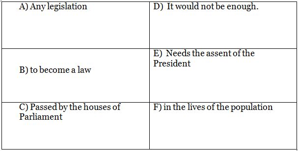 Direction (1-10): In the following questions two columns are given containing three sentences/phrases each. In first column, sentences/phrases are A, B and C and in the second column the sentences/phrases are D, E and F) A sentence/phrase from the first column may or may not connect with another sentence/phrase from the second column to make a grammatically and contextually correct sentence) Each question has five options, four of which display the sequence(s) in which the sentences/phrases can be joined to form a grammatically and contextually correct sentence) If none of the options given forms a correct sentence after combination, mark (e), i.e) “None of these” as your answer.