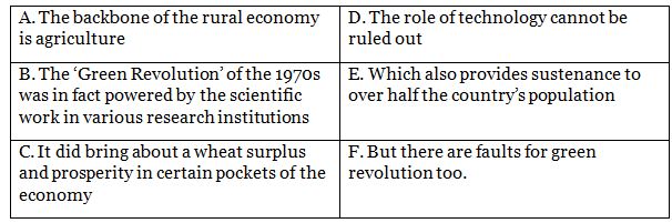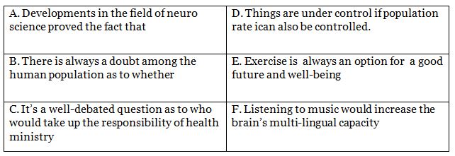 Direction (1-10): In the following questions two columns are given containing three sentences/phrases each. In first column, sentences/phrases are A, B and C and in the second column the sentences/phrases are D, E and F. A sentence/phrase from the first column may or may not connect with another sentence/phrase from the second column to make a grammatically and contextually correct sentence. Each question has five options, four of which display the sequence(s) in which the sentences/phrases can be joined to form a grammatically and contextually correct sentence. If none of the options given forms a correct sentence after combination, mark (e), i.e. “None of these” as your answer.