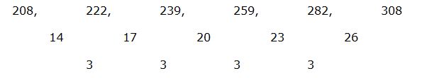 Here 308 is (n + 2)th term. So nth term is 5th term, i.e., 199