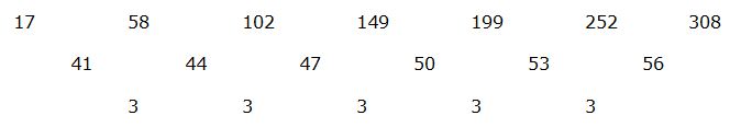 II) 17, 58 ……. 308. If 308 is (n + 2)th term, then what value should come in place of nth term?
