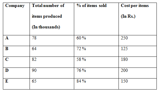 The following table shows the total number items produced by 5 different companies (In thousands) and the percentage of items sold and the cost per items.