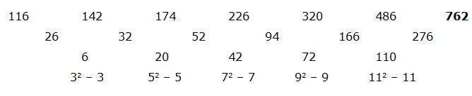 The difference of difference is, 32 – 3, 52 – 5, 72 – 7, 92 – 9, 112 – 11,…