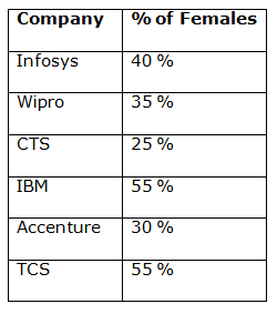 The following pie chart shows total number of employees in different MNC companies and the table shows the percentage of females in the companies.
