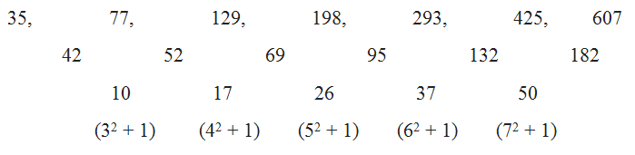 II) 35, 77 ………. 607 यदि 607 nवांपद है, तब n का मान ज्ञात कीजिये?