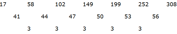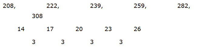 यहाँ 308 (n + 2)वां पद है, तो nवां पद, 5वां पद है, अर्थात् 199 है।