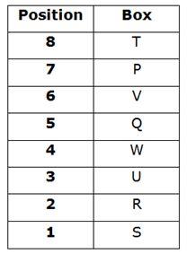 Eight boxes –P, Q, R, S, T, U, V and W are placed one above another but not necessarily in the same order. The box at the lower most is numbered as 1, and the box above it is numbered as 2 and so on.