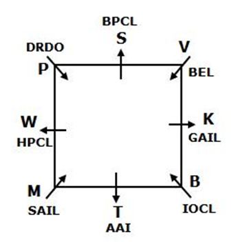 - The one who is working in HPCL sits third to the left of B, who does not facing away from the centre. The one who is working in GAIL sits second to the right of S and is an immediate neighbour of B.