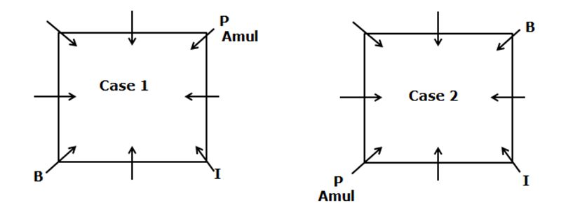 - B किसी भी भुजाओं पर नहीं बैठता है, बल्कि P जो अमूल को पसंद करता है, के विपरीत बैठता है।