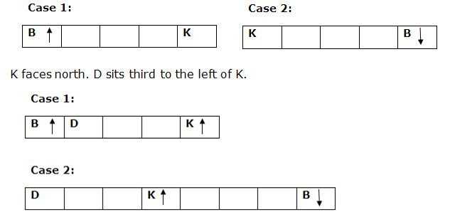 K, B के दायें से चौथे स्थान पर बैठता है।