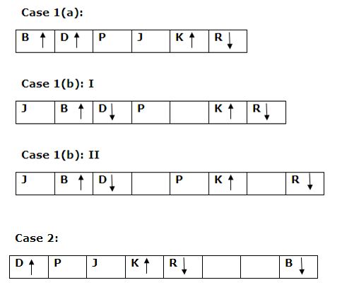 J, D के दाएं से दूसरा स्थान पर बैठता है। P, R के दाएं से तीसरे स्थान पर बैठता हैं | P, B के दाएं बैठता है।