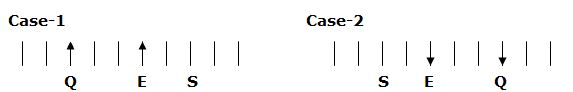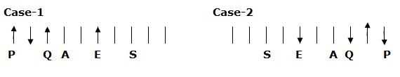 • E, Q के दायें से तीसरे स्थान पर बैठता है, जो पंक्ति के दोनों सिरों से तीसरा बैठता है।