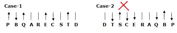 दस व्यक्ति A, B, C, D, E, P, Q, R, S और T एक सीधी रेखा में बैठे हैं लेकिन उसी क्रम में आवश्यक नहीं हैं। उनमें से कुछ उत्तर का सामना करते हैं हैं और उनमें से कुछ दक्षिण का सामना करते हैं। लगातार दो से अधिक व्यक्ति एक ही दिशा का सामना नहीं कर रहे हैं।