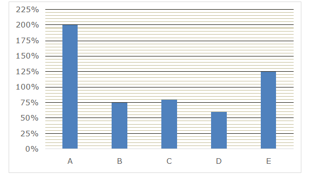 Bar graph shows the amount of Petrol as a per cent of amount of diesel. Let consider amount of diesel in first 5 mixtures A, B, C, D and E is 100 each.