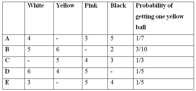 3) If 4 balls are taken out randomly from bag D, then find the probability of getting 2 pink balls from bag D?