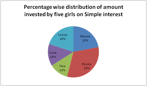 मीणा द्वारा साधारण ब्याज पर निवेश की गई राशि = 22/100 x 225000 = 49500 रुपए