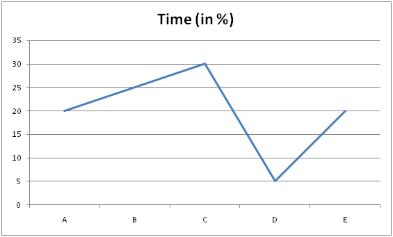दी गई रेखा ग्राफ यात्रा में पाँच अलग-अलग कारों द्वारा लिए गए समय का प्रतिशत दर्शाता है।