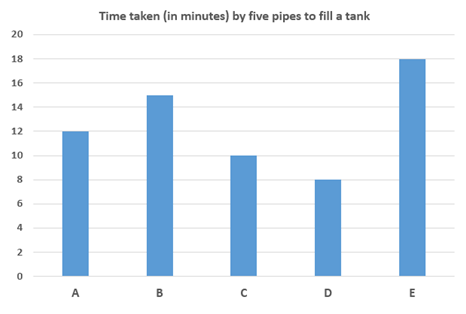 बार ग्राफ 1 एक टैंक को भरने के लिए पांच पाइप (A, B, C, D और E) द्वारा लिया गया समय दिखाता है