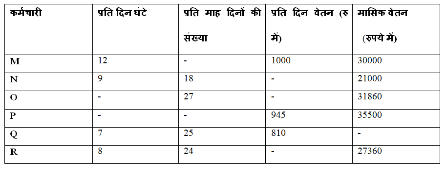 अब कर्मचारी O का वेतन एक दिन के लिए = 31860/27 = 1180 रु