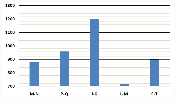 निम्नलिखित बार ग्राफ विभिन्न स्टेशनों के बीच दूरी (किमी में) का प्रतिनिधित्व करता है:
