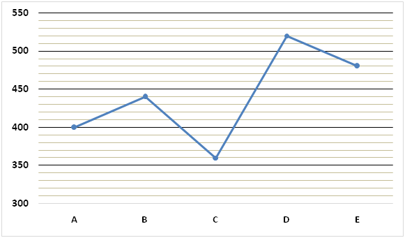 निम्नलिखित लाइन ग्राफ पांच ट्रेनों की लंबाई (मीटर में) का प्रतिनिधित्व करता है।