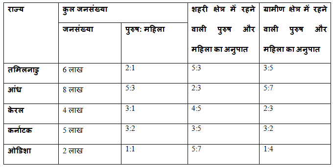 4) अगर 30%, 40%, 20%, 40% और 50% जनसंख्या क्रमशः तमिलनाडु, आंध्र, केरल, कर्नाटक और ओडिशा के ग्रामीण क्षेत्र में रहती है। निम्नलिखित में से कौन सा कथन सही है?