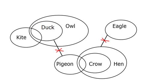 Clearly, there is no direct connection between Owl and Hen, thus “Some Owl are not Hen” is not true.