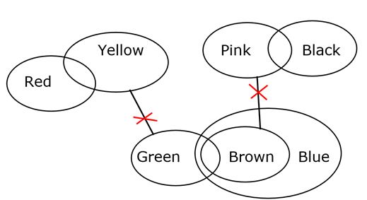 Clearly, there is no direct connection between Yellow and Brown, thus “Some Yellow are not Brown” is not true.