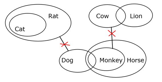 Clearly, there is no direct connection between Lion and Dog, thus we can’t say “All Lion can never be Dog”.