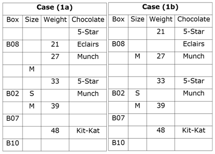 - One of the box having 5-Star is kept just above the box B08, which contains Eclairs, since boxes B10, the box whose weight is 27kg and the box whose box is 48kg are not kept adjacent to the box which contains 5-Star, that means in case (1a) & case (1b) the box having 5-Star is kept at top.
