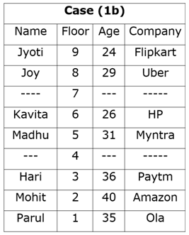 - Two person lives between the one who works in HP and Mohit, who was not born in 1980, since difference of age between adjacent person is not less than 3 years and not more than 5 years, in case (1b), case (2a), case (2b) & case (2c) Jyoti lives on floor marked 9 and the one whose age is 26 years works in HP and case (1c) is not valid.